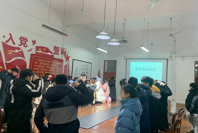 本次活动分为四个部分。第一部分:学习考风考纪相关条例 。各班级开展了考风考纪教育主题班会,强调了诚信考试的严肃性以及考试作弊的严重性。同学们通过学习深刻认识到了诚信备考的重要性,也树立了诚信应考的信念。第二部分:观看诚信考试教育短片。各班级组织同学们观看了诚信考试的短视频,在交流互动环节同学们积极参与,气氛活跃,各有领悟,争相发表了自己的观点和意见。第三部分:考风考纪宣传教育。通过爱运动等新媒体平台向同学们宣传考试舞弊行为的危害性以及不可弥补的严重后果。通过强调考风考纪希望同学们增强考试的诚信意识和纪律意识,希望每一个同学都能严肃考纪,端正考风,考前认真复习各项知识,用真实可信的成绩展现自己的学习能力和学习效果,做崇尚诚信的好青年。第四部分:进行遵守考风考纪宣誓活动。通过宣誓,同学们能够做到自整自律,自尊自爱,互相监督,弘扬正气,以诚信的态度对待每一场考试。