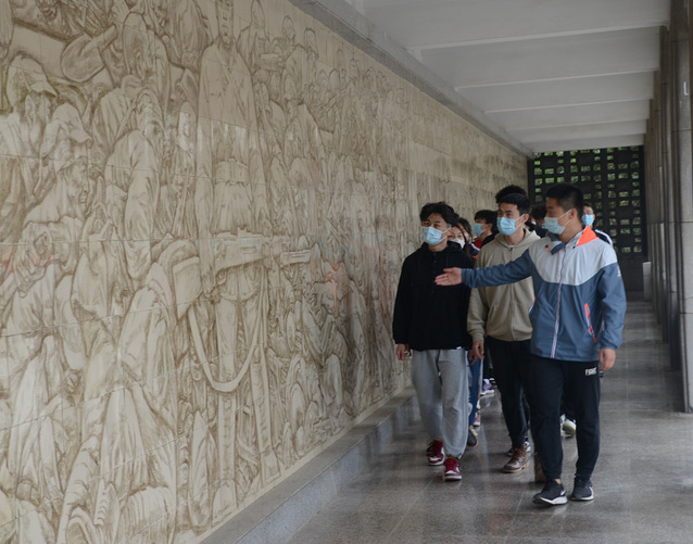 活动过程中,同学们首先参观了淮海战役烈士纪念塔,瞻仰了淮海战役的历史经过以及烈士们前仆后继、广大群众奋勇支援前线的英雄事迹,一起重温了这段值得我们永远铭记的历史。在淮海战役总前委群雕前,通过王雨婕同学的讲解,栩栩如生地再现了当年淮海战场上叱咤风云的五位伟人的光辉形象以及老一辈无产阶级革命家对胜利充满信心的精神风貌。通过学习淮海战役中无产阶级革命家的英雄事迹,同学们表示要以先烈们为榜样,用实际行动发扬革命优良传统,树立远大志向,为实现中华民族伟大复兴而努力奋斗。