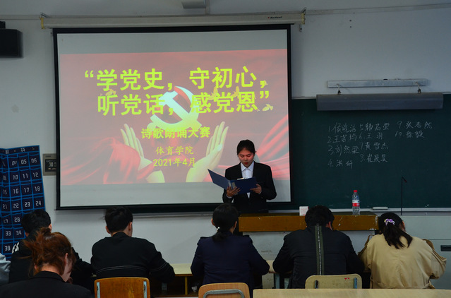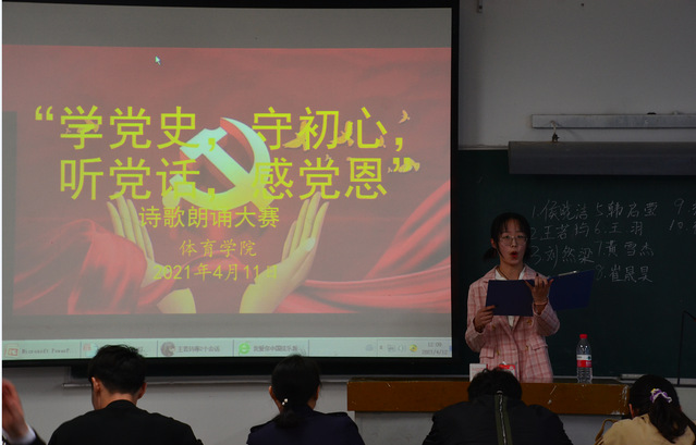 为纪念中国共产党成立100周年,进一步开展党史学习教育,展现新时代老员工风采,BETVLCTOR伟德国际1946于4月12日下午在南主楼C302教室,举办了以“学党史,守初心,听党话,感党恩”为主题的诗歌朗诵比赛。BETVLCTOR伟德国际1946员工科科长纪素艳老师和员工会主席团成员担任本次活动的评委。