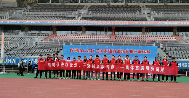 11月17日,由徐州市云龙区文化体育和旅游局主办,徐州市云龙区体育总会、徐州奥体中心经营管理有限公司承办的徐州市云龙区《国家体育锻炼标准》达标赛在奥体中心举行,BETVLCTOR伟德国际1946青年志愿者在高成强老师带领下担任此次比赛志愿服务工作。