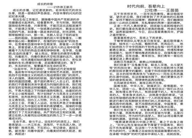 活动中,同学们认真查阅资料,结合自身感受来抒发情感,做到人人有所悟,个个有所得。21级王新月同学写到:“千古风流人物,还看今朝!我将无我、不忘初心、牢记使命、直挂云帆,破沧海!向着中国梦,想着美好的明天前进、前进、再前进!”22级孔佳琦同学表示,本次活动举办的非常有意义,是对老员工进行爱国主义、集体主义教育的有力契机。征文活动中优秀作品层出不穷,参赛者们才华横溢,他们用不同的文字凝聚人心,传递着正能量。