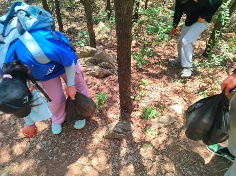 三、绿水青山,无痕山林。近年来,旅游、登山、野营等户外活动日益增多,但随之而来的是,一些户外运动爱好者破坏自然生态环境的事情也屡屡发生。为积极贯彻“绿水青山,就是金山银山”的绿色发展理念,BETVLCTOR伟德国际1946“云体Club”的成员们利用暑期时间,组织同学们在月亮湾、泉山森林公园等地方捡拾其他徒步者们遗留的垃圾,以此宣传并践行“无痕山林”的七大原则,呼吁大家在享受大自然的过程中也不忘保护环境。