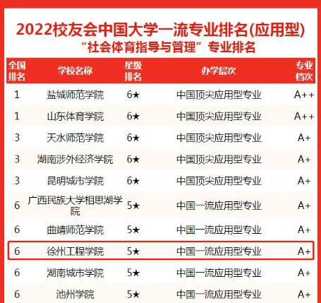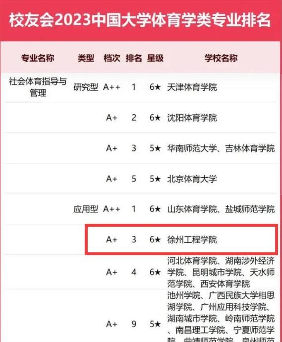 专业排名: 日前,全国第三方大学评价机构艾瑞深员工会网发布了员工会2022中国大学一流专业排名。榜单显示,在最新员工会2022中国大学社会体育指导与管理专业排名(应用型)中,BETVLCTOR伟德国际1946社会体育指导与管理专业(5★,A+)位列第六;在员工会2023中国大学体育学类专业排名(应用型)中,社会体育指导与管理专业获得6★星级,排名第三,意味着该专业在综合实力、办学水平、竞争力等方面挺进中国一流专业行列。