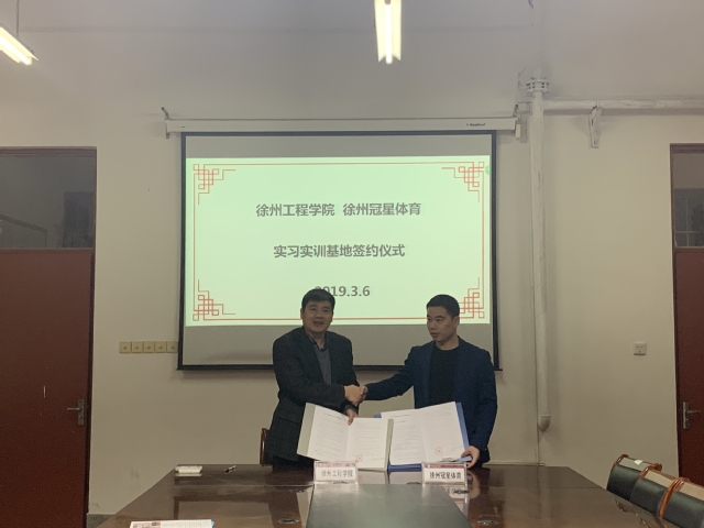 张占平副经理介绍了公司社体专业办学情况并就员工实习、实训以及跆拳道课程开设现状作了详细的说明,了解该公司体育专业人才需求情况,希望双方能在员工培养、人才培养方案制定、实习实践等方面开展深度交流。总经理周琪怀就徐州冠星国际跆拳道文化有限公司的基本情况和公司目前开展的主要业务作了详细的介绍,认为公司培养人才在沟通交流能力强、工作态度认真负责,具有较高的综合素质。希望双方能够进一步加强合作。会晤最后,校企双方签订了校企合作框架协议,并进行合影留念。签约仪式结束后,总经理周琪怀一行在蒋善华主任陪同下参观了公司实验室等实训场地。