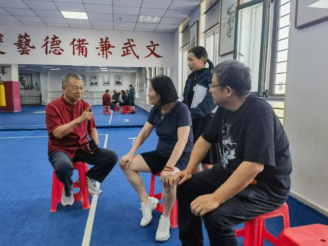上午,调研团队拜访了沧州武术界的两位资深人士——劈挂拳国家级非物质文化遗产代表性传承人郭贵增和沧州武术国家级非物质文化遗产代表性传承人王志海。调研团队参观了郭贵增先生的练武场所,深入了解了劈挂拳的传承谱系、传承现状和技艺特点。王志海作为沧州武术的代表性传承人,则从自己多年的武术教育与实践经验出发,分享了沧州武术在青少年培养、社会普及以及国际交流等方面的成果与挑战。
