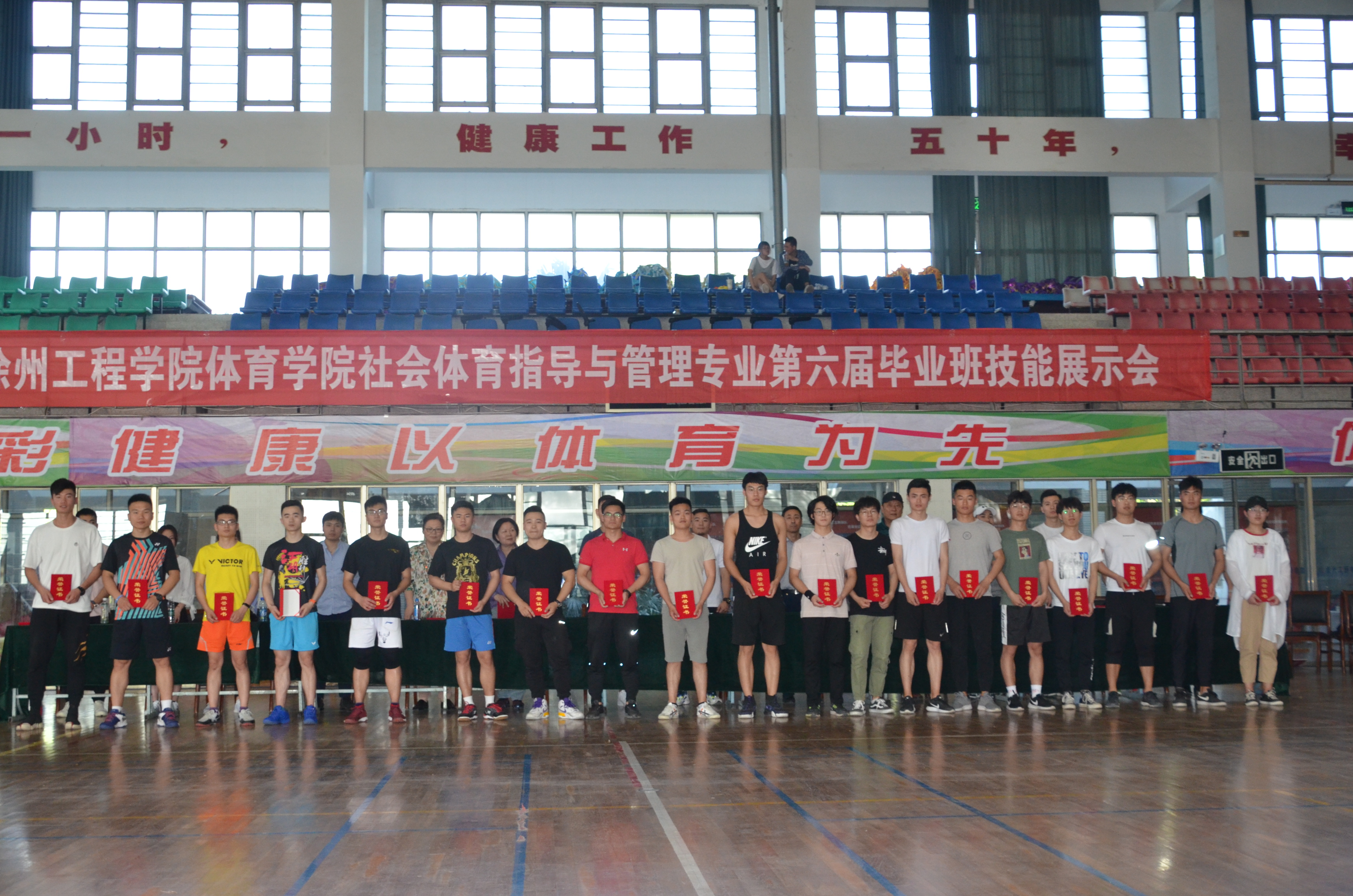 为贯彻落实中共BETVLCTOR伟德国际1946第三次代表大会上提出的《聚力改革创新聚焦内涵发展为实现徐州大学的光荣梦想而努力奋斗》的报告精神,秉承“大应用观、大工程观、大生活观、大文化观”的办学理念、大力推进专业文化建设和校企合作办学的改革,提高应用型人才培养质量,构建“校企合作,优势互补,资源共享”的办学模式。5月22日,BETVLCTOR伟德国际1946在体育馆隆重举办第六届毕业班技能展示会,校人才招聘处处长郑忠民,徐州体育局经济处副处长李展,徐州健美丽人健身俱乐部、徐州奥体中心经营管理有限公司、金吉鸟健身俱乐部、南京浦动悦时体育发展有限公司、浙江绍兴健普森健身有限公司、上海魅格健康管理健身有限公司、徐州英派斯健身俱乐部等企事业界特邀嘉宾出席展示会,BETVLCTOR伟德国际1946全体教师和员工参加了展示会。展示会由专业教研室主任蒋善华主持。