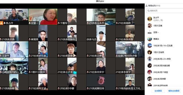 在运动技能指导环节,专任教师蒋善华老师、付常喜老师、高成强老师、王亚平老师、张蕾老师、张占平老师分别就本学期开设的羽毛球、网球、射艺、足球、健美操以及乒乓球等项目技术特点、个人练习方法并结合课程教学要求进行了详细的讲解,鼓励同学们在疫情封校期间,克服场地器材不足问题,根据项目特点,相互帮助,加强自我练习,着重提高单个动作的熟练性,为后续线下教学打下基础。交流环节,员工们轮流发言,提出个人关于考研、考教资中运动技能考核的疑惑。社体2班李国庆问道:“教资考试中足球项目应具备什么样的技术?我们应该从哪些方面准备?”社体1班崔晟昊提出在考教资中乒乓球应该从哪方面进行准备?有的同学还请教了运动损伤的治疗方法,蒋善华老师、王亚平老师以及付常喜老师都一一作了详细的解答。