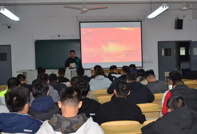比赛现场,参赛者们以其铿锵有力的气势,充沛饱满的感情,自信大方的形象赢得老师和评委们的阵阵掌声。在轻悠的配乐中,同学们以饱满的热情,高昂的斗志诠释了革命精神,场上精彩不断,掌声此起彼伏。现场优美的配乐、恰到好处的语感、和谐优美的体态语言,让聆听者仿佛走近了一个个革命伟人的身边。与其说这是一场红色经典诗文诵读比赛,不如说这是一次视听盛宴,更是莘莘学子们爱党爱国的精彩演绎。比赛的同时,评委们通过对诗歌内容、语言表达、仪表姿态、现场感染力等方面对参赛者们进行现场评分,并对参赛者们的表现进行了肯定并作出了点评。
