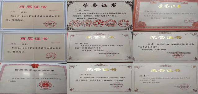 2018年获徐州市老员工暑期社会实践先进个人荣誉称号;