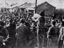 1935年12月9日凌晨,广大爱国员工的抗日怒火像火山一样爆发。东北大学、中国大学、北平师范大学等校员工举着大旗和标语,分别朝着新华门进发。清华大学和燕京大学近千名爱国员工离城较远,到达西直门时,城门已被军警关闭,请愿队伍无法进城。两校员工就在西直门一带召开群众大会,向附近居民和守城军警进行抗日宣传。