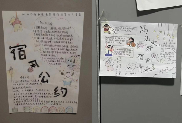 活动中,参赛员工根据活动评分标准进行内容创作,作品纸张统一使用A4 纸张进行手绘,内容以宿舍管理相关规定为基础,结合宿舍成员的共性特点,围绕宿舍学风、安全、卫生、作息、生活习惯和兴趣爱好等方面,凝练具有本宿舍特点的文明公约。作品完成后,各宿舍将粘贴到自己宿舍门后展示,用实际行动表示要自觉遵守文明公约,营造良好和谐美好的宿舍氛围。
