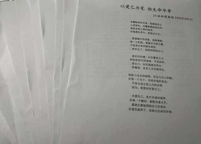 征文围绕心理健康、心灵成长、人际关系等多方面展开。活动开启以来,广大同学积极参与,同学们围绕不同主题,以细腻的笔触与真挚的情感,描绘自己对心理健康的理解与追求,分享成长过程中的心灵提升。 在众多优秀的参赛作品中,评委老师们秉持着公平、公正、公开的原则,精心挑选、优中选优,最终评选出一等奖3名同学、二等奖4名同学、三等奖5名同学。